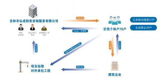 鉴于案件重大复杂,吉林市税务局稽查局联合当地公安经侦部门共同组建专案组,依法对弘成财务及涉及的37家个体户立案检查,并对相关人员展开深入调查。经查,弘成财务是当地一家颇具规模的涉税中介机构,日常为260余家企业提供代理记账、纳税申报和发票领取等服务,实际控制人为法定代表人李丽及股东段洪涛,王博为办税人员。
