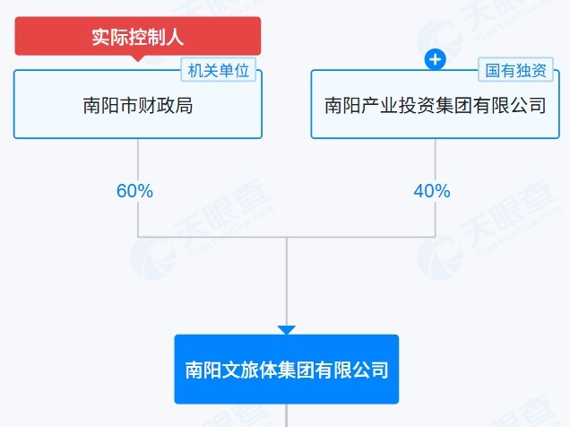 天眼查显示,南阳文旅体集团有限公司(曾用名:南阳文旅集团有限公司),成立于2021年,注册资本127568.86万人民币。该公司由南阳市财政局持股60%、南阳产业投资集团持股40%。