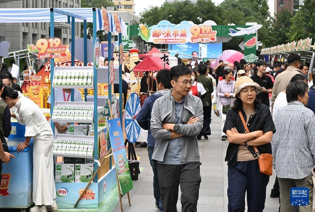 9月19日,市民在北京西城金融街“邮味集市”上选购。